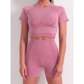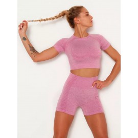 Бесшовный короткий спортивный топ для фитнеса и йоги (Розовый) размер M