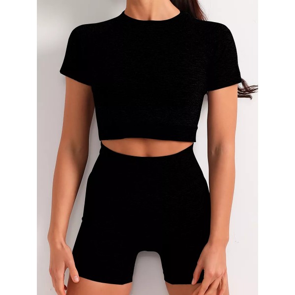 Бесшовный короткий спортивный топ для фитнеса и йоги (Черный) размер S