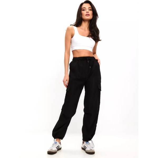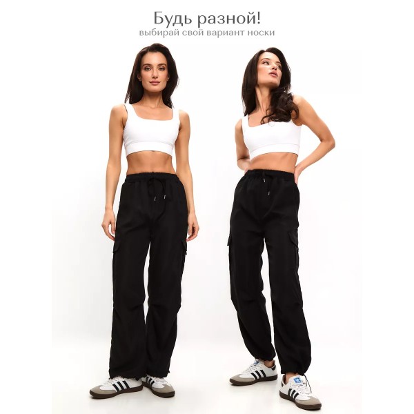 Женские Штаны карго с боковыми карманами в ногах на резинках (Чёрный) S