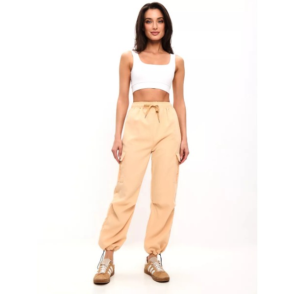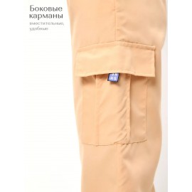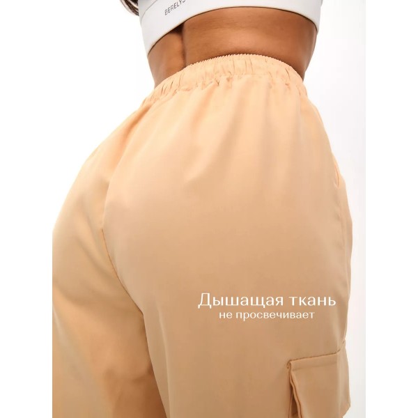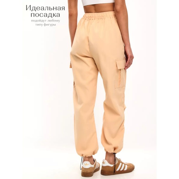 Женские Штаны карго с боковыми карманами в ногах на резинках (Бежевый) L