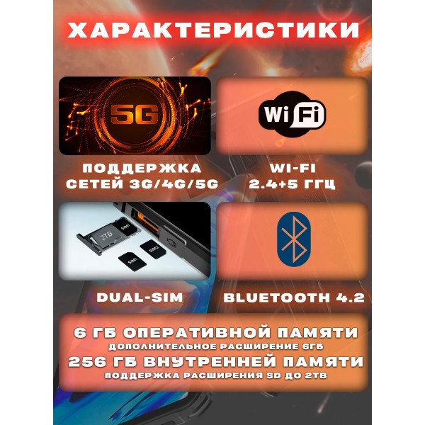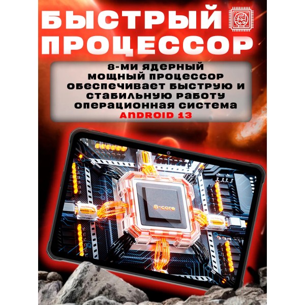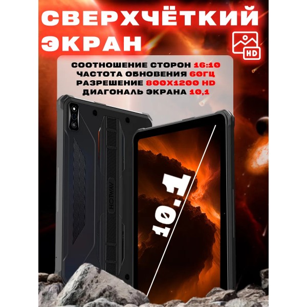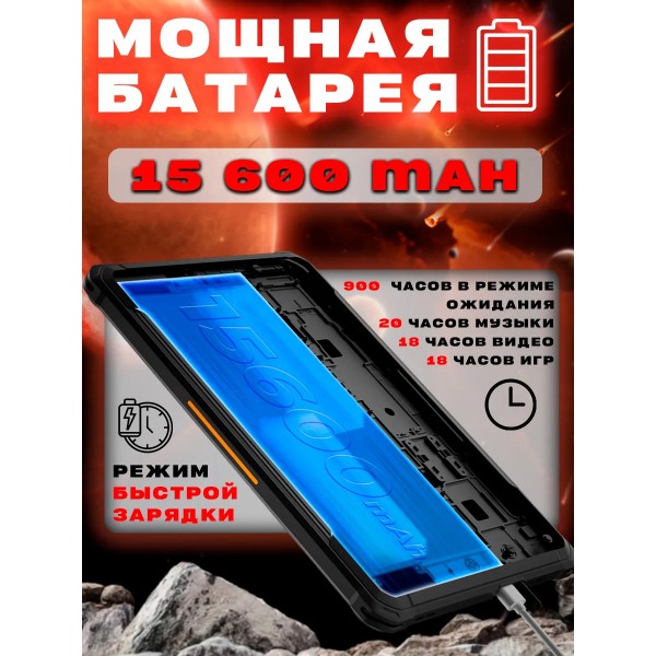 Планшет Hotwav Tab R7 - это прочный планшет на Android, созданный для того, чтобы стать незаменимым помощником как дома, так и на работе или в полевых условиях. Благодаря сертификации MIL-STD-810H, HOTWAV R7 способен выдерживать удары и падения, а рейтинг защиты от пыли и влаги IP68К, означает что он может выдерживать попадание пыли, высоких температур и воды под высоким давлением (погружение на глубину до 1.5 м). HOTWAV R7 имеет поддержку нескольких технологий GPS, включая Beidou, Galileo, Glonass и GPS. Планшет разработан таким образом, чтобы работать с ним можно было даже в перчатках. Имеется поддержка распознавания лиц, так что вам не всегда нужно будет использовать сенсорный экран для разблокировки устройства. Планшет оснащен действительно удобной функцией обратной зарядки OTG, что позволяет подключить другое устройство к нему и использовать планшет для зарядки любого устройства, у которого разрядился аккумулятор. Для подключения двух устройств вам понадобится кабель. При это HOTWAV R7 оснащен мощным аккумулятором. Поэтому он легко может служить внешним аккумулятором, если вам нужно подзарядить другие устройства. Его аккумулятор емкостью 15 600 мАч, обеспечивает 18 часов непрерывного просмотра видео или 20 часов непрерывного воспроизведения музыки. А если вы не используете его постоянно, он продержится до 900 часов в режиме ожидания.HOTWAV R7 имеет 10,1-дюймовый HD+ дисплей, который отлично подходит для просмотра шоу и фильмов, игр или чтения. Благодаря 256 ГБ встроенной памяти у вас будет достаточно места для загрузки приложений и игр или множества фильмов и музыки. Конечно, 256 ГБ могут быстро заполниться, но R7 также поддерживает расширение памяти до 2 ТБ с помощью карты microSD. Так что у вас будет столько места, сколько вам понадобится.