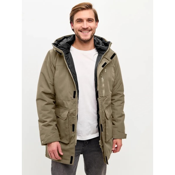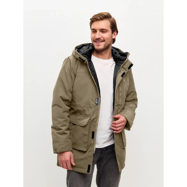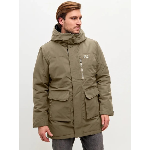 ЗИМНЯЯ куртка пуховик с белым мраморным подкладом PG МОДЕЛЬ 2 (Хаки) синтепон L