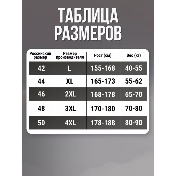 См. РАЗМЕРНУЮ СЕТКУ!!! Термобелье мужское – потрясающе нежный комплект нательного белья из кашемира и шелка - настоящее спасение в холодное время года. Комплект термобелья состоит из штанов леггинсов и лонгслива водолазки, супермягкий и эластичный, натуральные материалы и плоские швы обеспечивают превосходный комфорт и отвод влаги при носке. Обращаем Ваше внимание, что термо белье является невозвратным товаром, примерка возможна только в пункте выдачи. Теплое термобелье мужское поддерживает естественный теплообмен, отводит влагу, благодаря поглощнию пота с поверхности кожи. Термо белье не позволит перегреться или замерзнуть. Нательное термо белье мужское тонкое. Термоодежда мужская многофункциональна, используется как: термокомплект мужской для спорта спортивный термокостюм для рыбалки и охоты одежда тактическая. Термобелье комплект зима из мягкой приятной к телу ткани, позволит сохранить ощущение свежести и комфорта. Подойдет для: бег горнолыжный спорт фигурное катание охота рыбалка сноуборд беговые лыжи туризм или других зимних активностей. Анатомический крой с облегающей посадкой, удлиненная спинка на куртке и высокая посадка кальсон обеспечат отличные ощущения в движении. Так же термобелье подойдет и в качестве одежды для мжчин и подростков, которые имеют большие размеры за счет эластичности и больших размеров. Термобелье спортивное отличный подарок на день влюбленных 14 февраля, 23 февраля день рождения для мужчины любимому папе другу дедушке брату.