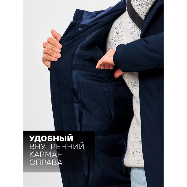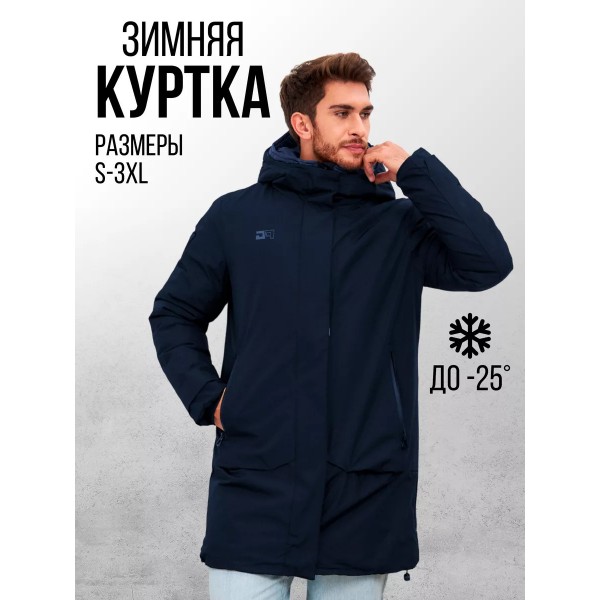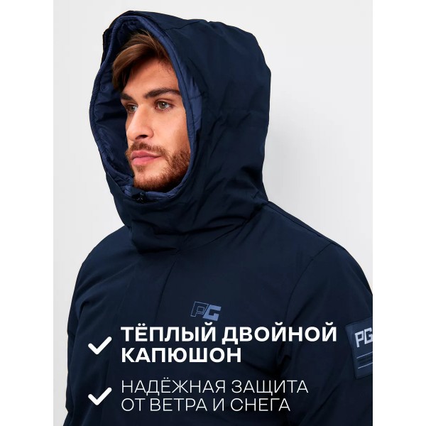 ЗИМНЯЯ куртка пуховик с зелёным внутри капюшоном длинная PG (Синий) синтепон р S