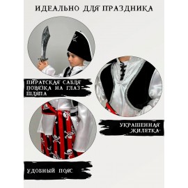 Карнавальный костюм Маленький пират размер 32 122-128 – отлично подойдет для утренника в детском саду, для новогодней вечеринки, для костюмированной сценки по мотивам русских народных сказок.