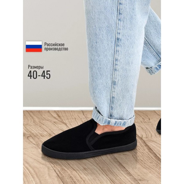 Мужские мокасины-кеды Вельвет шахматная внутренняя стенка (Чёрный) Размер 44