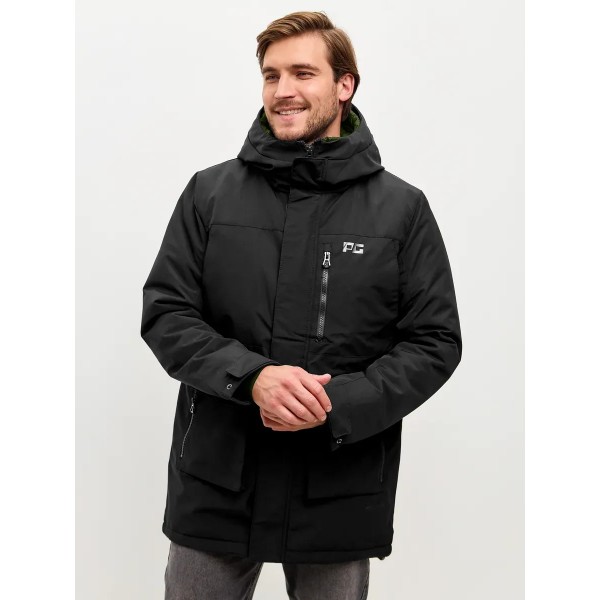 ЗИМНЯЯ куртка пуховик с белым мраморным подкладом PG МОДЕЛЬ 2 (Черная) синтепон L