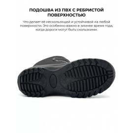 Подошва из ПВХ имеет ребристую поверхность, что делает её нескользящей и устойчивой на любой поверхности. Это особенно важно в зимнее время года, когда дороги могут быть скользкими.