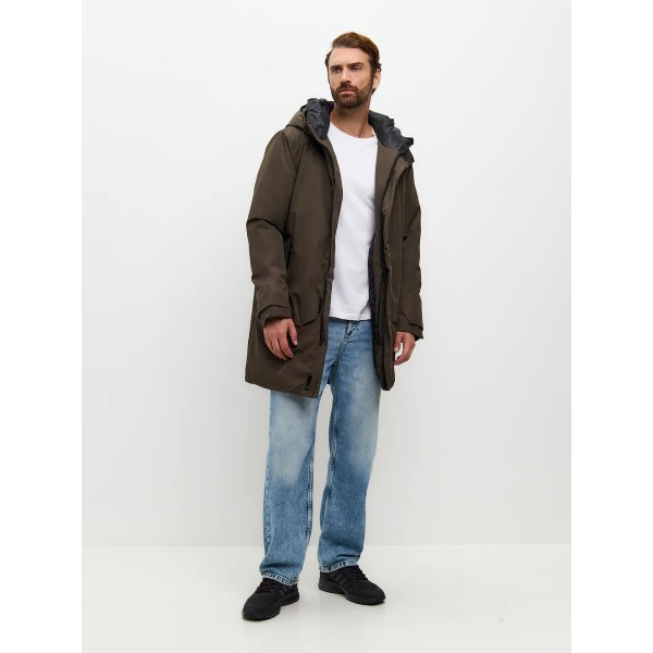 ЗИМНЯЯ куртка пуховик с зелёным внутри капюшоном длинная PG (Хаки) синтепон р L