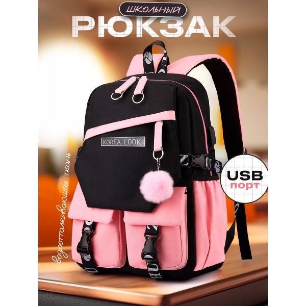 Рюкзак бренда KOREA LOOK - идеальное решение для школы и города. Он прекрасно впишется в гардероб каждой школьницы и школьника. Школьный портфель Korea Look очень вместительный, при этом он не слишком большой, таким образом сочетает стиль и функциональность. Ранец Korea Look имеет удобные внутренние отделения и функциональные внешние карманы, что позволяет разместить как учебники так и сменную обувь, ноутбук или даже пляжные принадлежности. Анатомическая дышащая спинка в сочетании с эргономичные регулируемыми лямками равномерно распределяют нагрузку и сохранят осанку вашему ребенку! Функциональный USB-вход для зарядки, даст возможность зарядить телефон от вашего пауэр-банка в любой ситуации без дополнительных сложностей с открыванием/закрыванием рюкзака и торчащих проводов.