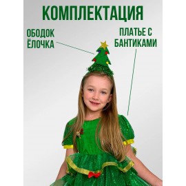Костюм карнавальный Елочка - идеальный праздничный образ для Вашей девочки. Это настоящий атрибут и символ предстоящего праздника, ведь это главная героиня Нового Года 2025. Ёлочка - та самая красавица, популярности которой можно сравнить с Дедом Морозом и Снегурочкой. В комплект новогоднего наряда входит: нарядное платье и головной убор - ободок елочка. Маскарадный костюм украшен красивыми новогодними нашивками в сказочном стиле, также присутствуют блестки и пайетки, которые добавляют волшебства образу Елочки. Девочка в нежном и волшебном образе Елки подарит Вам и всем окружающим праздничное настроение и наполнит праздник сказочной атмосферой! Детский маскарад сделает Вашего ребенка самым красивым и ярким на любом торжественном мероприятии, посвященном Новому Году и Рождеству. Карнавальные товары и вещи отлично подходит на новогодние утренники в детском саду и школе, участникам творческих народных коллективов, на выступление в театре, на елку, нг, др, концерт, на праздник и просто, как подарок на Новый год девочке. Детская новогодняя одежда от Батик создаст самое незабываемое новогоднее настроение!