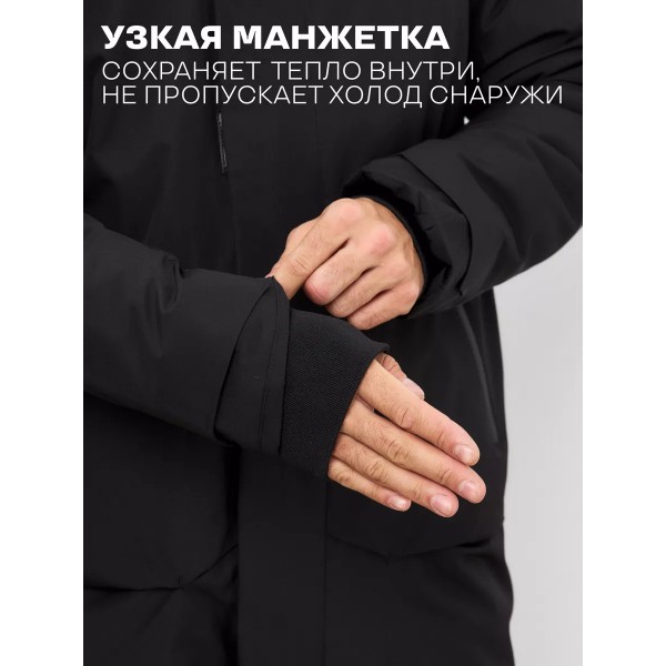 ЗИМНЯЯ куртка пуховик с зелёным внутри капюшоном длинная PG (Чёрный) синтепон р L