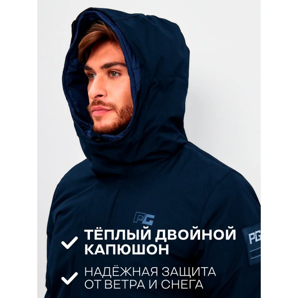 ЗИМНЯЯ куртка пуховик с зелёным внутри капюшоном длинная PG (Синий) синтепон р XL