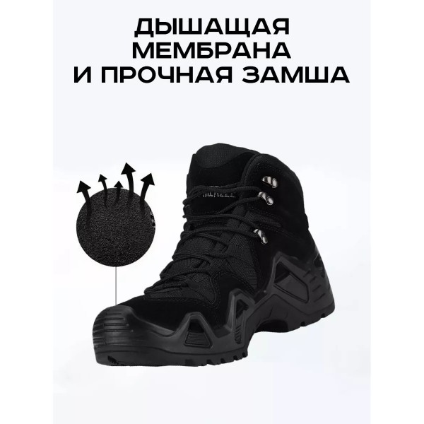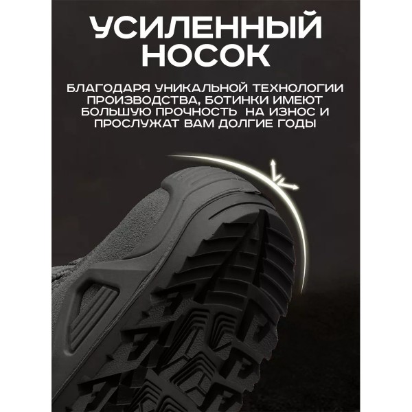 Внимание! Ботинки мужские тактические идут с низким берцем, средним берцем и высоким берцем размер в размер, летние кроссовки - смотрите под размером длину стельки в сантиметрах! Не на всех ботинках есть надписи, на качество товара это не влияет ;) Тактические ботинки Лова ,берцы водостойкие и дышащие, заслужившие большое количество наград и положительных отзывов. Демисезонные черные берцы это аналог LOWA, не уступающий по качеству материалов и комфртабельности со средним или высоким берцем, а так же низкие межсезонные кроссовки. Походные ботинки изготовлены из натуральной кожи и из высококачественной микрофибры толщиной 2 мм и прочного материала Cordura. Данная модель имеет мембрану, которая обеспечивает водонепроницаемость и отводит излишки влаги с поверхности кожи. Система шнуровки ботинка состоит из нейлоновых петель и металлических накладных петель, в которых вставлены прочные полипропиленовые шнурки. Данная коллекция была разработана для самых тяжелых условий, она наиболее приспособлена для активного отдыха и туризма.. Внутренняя часть мужских ботинок выполнена из влагоотводящей ткани, которая позволяет ногам оставаться сухими даже в жаркую погоду, а также быть комфортными в носке при температуре от -15 до + 30 градусов. Мужская обувь квалифицируется как ботинки осенние мужские зимние, у которых подкладка тактических ботинок на мембране, что позволяет ноге дышать и в тоже время сохранять термоизоляционные качества. Шнуровка на трекинговых полуботинких на закрытых петлях-крючках позволяет ускоренно зашнуровывать берцы мужские зимние. Прочные и надежные тактические ботинки или зимняя мужская обувь отлично зарекомендовали себя в спецподразделениях РФ, пройдя самые жёсткие испытания в условиях знойной жары, по-настоящему суровой зимы и любой пересечённой местности. Берцы мужские имеют эргономичную стельку для максимального комфорта при длительных высоких нагрузках. Обработайте кроссовки мужские водооталкивающим спреем и ваша обувь будет сухая.