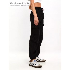 Женские Штаны карго с боковыми карманами в ногах на резинках (Чёрный) XL