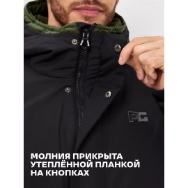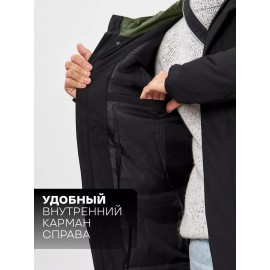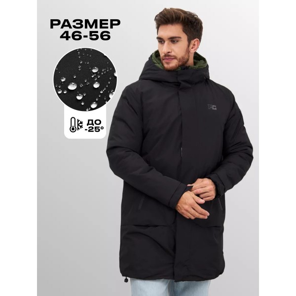 ЗИМНЯЯ куртка пуховик с зелёным внутри капюшоном длинная PG (Чёрный) синтепон р XXL