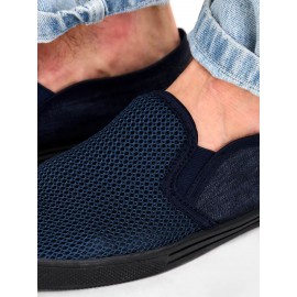 Мужские мокасины-кеды в Сетку шахматная внутренняя стенка (Синий) Размер 45