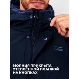 ЗИМНЯЯ куртка пуховик с зелёным внутри капюшоном длинная PG (Синий) синтепон р XXL