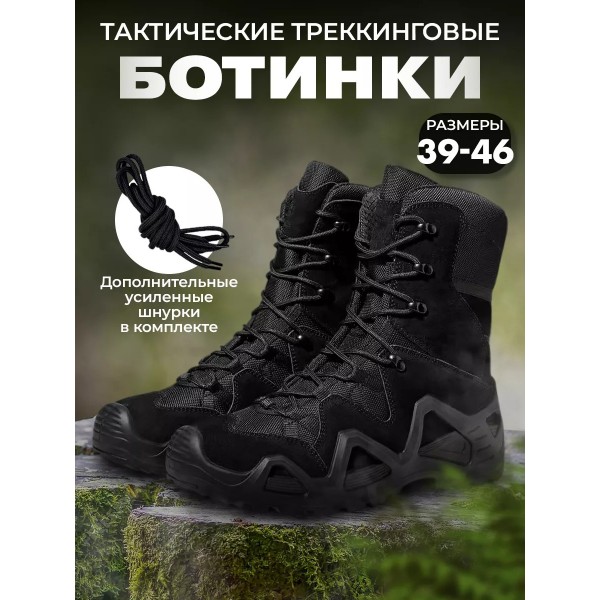 Тактические трекинговые ботинки мужские Высокие Черный размер 42