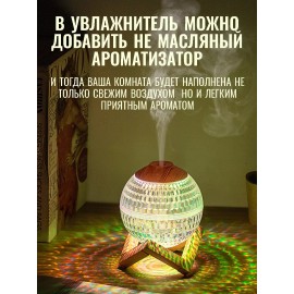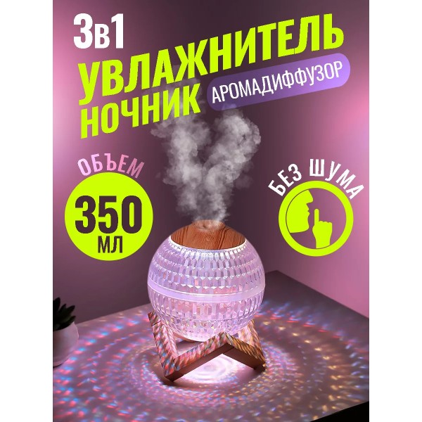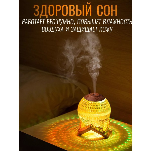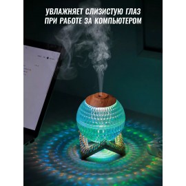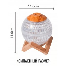 Увлажнитель воздуха сферический прозрачный светящийся на деревянной подставке