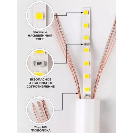 Светодиодная лента 360° это всегда отличный подарок на новый год, день рождения или другой праздник. Подойдёт для подсветки шкафов или автомобиля украсит интерьер и увеличит освещение. Такое украшение отлично подойдет как праздничная атрибутика. Неоновая лента используется для создания светящихся надписей, узоров картин или подсветки помещиний и мебели в них. Её установка не требует значительных усилий, все контакты подсоединяются через разъемы. Настенная светодиодная лента используется для украшения гостиной или комнаты, а в спальне дома можно создать романтическую обстановку. Сделать освещение более мягким в ночное время легко, если электрическая лампа будет отключена, а светодиодная лента гореть в одной или нескольких зонах. Напряжение при работе самоклеящейся ленты составляет 12V. Длина сотавляет 4 метра. Подарочный набор включает кабель питания для включения в сеть с вилкой. Светящаяся лента может устанавливаться на силикон или специальные крепления. Украсить пространство в зале позволит декор на основе светодиодной ленты. Удобный ночник в зоне кухни или коридора также легко создать при помощи неоновой подсветки. Регулировать длину можно при помощи отрезка необходимого размера, ленту можно разрезать кратно 1м СТРОГО по специальным отметкам, которые видно на просвет. Подключить штекер-разъемы легко и быстро. Диодная лента используется дома и на улице в новогодние праздники. Разнообразить дизайн, акцентировать прихожую можно также при помощи ленты. Хранение подсветки не требует много места. Красивая лестница с подсветкой или мягкий свет в ванной быстро реализовать с неоновой подсветкой. Герметичная структура ленты помещена в силиконовый чехол. Украсить авто парню, комнатные зоны быстро при помощи съемного штекера. Яркая клавиатура и светящаяся полка по контуру - идеальное сочетание в комнате геймера подростка. Безопасная светодиодная лента - отличный презент мужу, парню или папе, чтобы украсить авто или гараж. оформление помещений безопасно за счет степени пылевлагозащиты IP68 и гибкой структуры в защищенном корпусе.