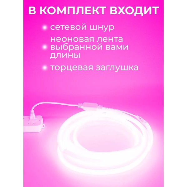 Комплект Лента гибкий неон 360 градусов 4 метра (Розовый) + 1 розетка + 4 крепления