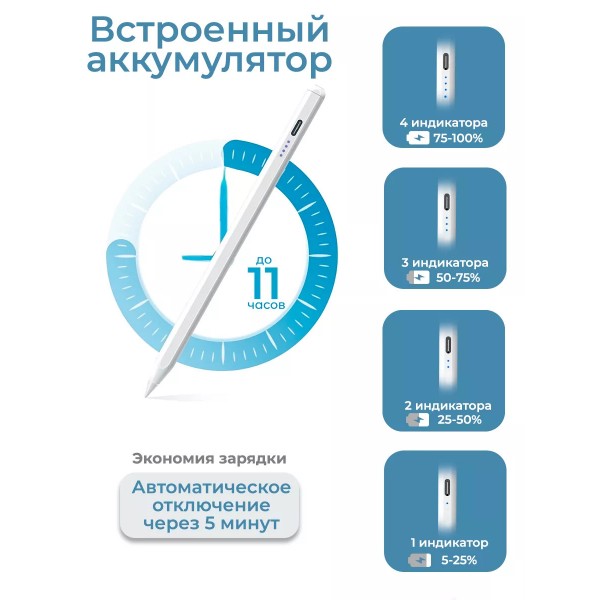 Эта емкостная ручка подходит для различных устройств, таких как планшеты, смартфоны, электронные книги и т. д., удовлетворяя потребности пользователя в письме в различных сценариях. Он может работать не только с планшетами SAMSUNG/HUAWEI/Vivo/Mi и других брендов, но также с iPhone, iOS/Android/Harmony OS и другими системными мобильными телефонами. Он может обеспечить вам комфортное и безбарьерное письмо и рисование на разных устройствах. Этот стилус можно использовать для рисования, письма, заметок, игр, подписания и иллюстраций. Он поддерживает практически все виды приложений, таких как GoodNotes, ArtFlow, Notability, Noteshelf, Notepad+, Procreate, Painter, Design и т. д. Идеально подходит для художников, журналистов, инженеров, учителей, студентов и т. д. Стилус для iPad оснащен функцией умного сохранения. единиц, он автоматически перейдет в «Режим сна» после 5 минут простоя для экономии энергии. Макс. 11 часов непрерывной работы. Просто дважды коснитесь верхней части стилуса, и вы сможете легко использовать его для iPad без каких-либо приложений или Bluetooth. С помощью этого емкостного стилуса с технологией Palm Rejection вы можете рисовать, делать наброски и писать на планшете без перчаток и предотвращать случайное соприкосновение ладони с экраном. Идеально подходит для деловой поездки, встречи, школы и дома. Этот стилус с тонким медным наконечником толщиной 1,5 мм обладает чувствительностью к наклону, обеспечивает лучшую точность и совместимость. Наклоняя под разными углами, можно рисовать линии разной толщины, делая нарисованное изображение более реалистичным и естественным. Примечание. Устройства, поддерживающие функцию магнитной адсорбции: iPad Pro12,9 дюйма/iPad Pro11 дюйма/iPad air4/iPad mini6. В комплекте - графический стилус, кабель для зарядки, (micro USB - USB 2.0 Type-A), инструкция по эксплуатации.