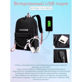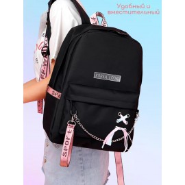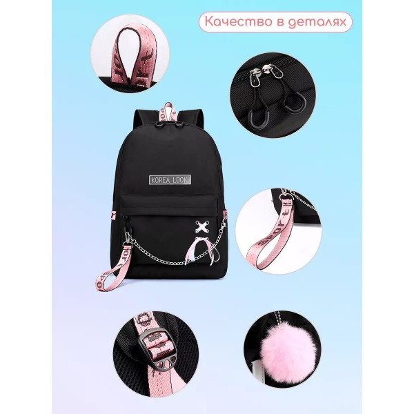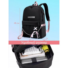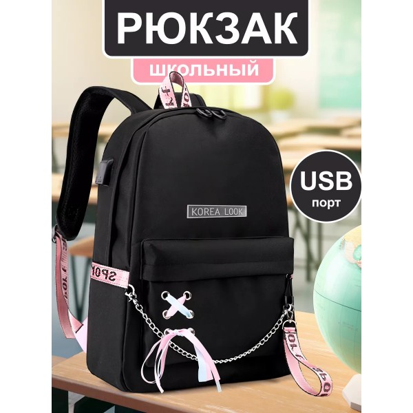 Городской школьный рюкзак KOREA LOOK с тесьмой ОДИН КРЕСТ для учащихся (Черный)