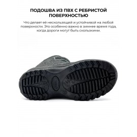 Подошва из ПВХ имеет ребристую поверхность, что делает её нескользящей и устойчивой на любой поверхности. Это особенно важно в зимнее время года, когда дороги могут быть скользкими.
