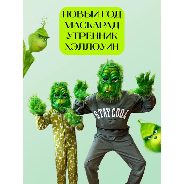 Карнавальная маска Гринч + перчатки