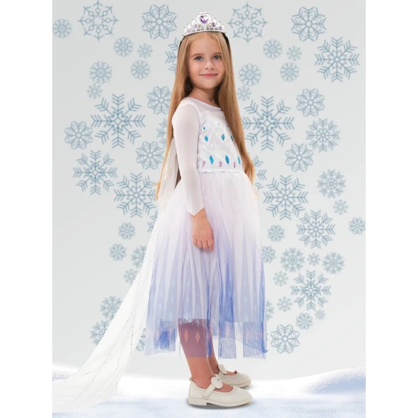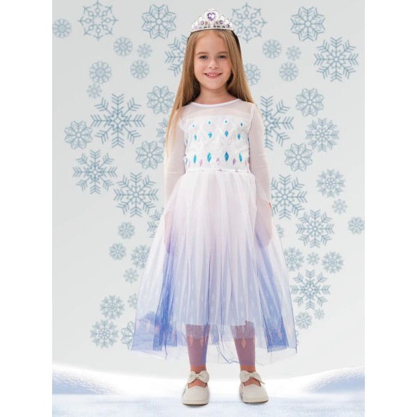 Легкое и воздушное платье, словно снежинки, подарит вашему ребенку ощущение волшебства и легкости. Сочетание голубых оттенков и блестящих украшений подчеркнет королевскую изысканность образа.