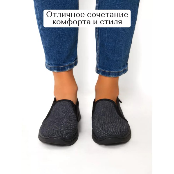 Женские слипоны - отличный вариант в прохладную погоду! Верх сделан из материала джинса высокого качества, который обеспечивает повышеную плотность и износоустойчивость обуви и хороший отвод влаги, не сдавливает и не натирает ногу. Подошва из ПВХ, лёгкая и комфортная для повседневной носки.