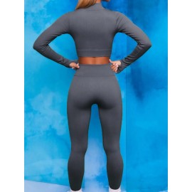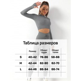 Женский спортивный костюм в рубчик для фитнеса лосины и топ с длинным рукавом и молнией для йоги и бега (Серый) размер L