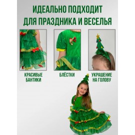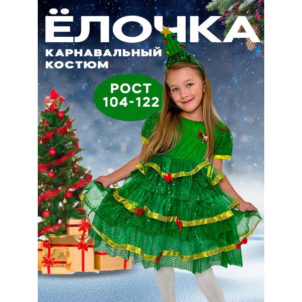 Костюм карнавальный Елочка - идеальный праздничный образ для Вашей девочки. Это настоящий атрибут и символ предстоящего праздника, ведь это главная героиня Нового Года 2025. Ёлочка - та самая красавица, популярности которой можно сравнить с Дедом Морозом и Снегурочкой. В комплект новогоднего наряда входит: нарядное платье и головной убор - ободок елочка. Маскарадный костюм украшен красивыми новогодними нашивками в сказочном стиле, также присутствуют блестки и пайетки, которые добавляют волшебства образу Елочки. Девочка в нежном и волшебном образе Елки подарит Вам и всем окружающим праздничное настроение и наполнит праздник сказочной атмосферой! Детский маскарад сделает Вашего ребенка самым красивым и ярким на любом торжественном мероприятии, посвященном Новому Году и Рождеству. Карнавальные товары и вещи отлично подходит на новогодние утренники в детском саду и школе, участникам творческих народных коллективов, на выступление в театре, на елку, нг, др, концерт, на праздник и просто, как подарок на Новый год девочке. Детская новогодняя одежда от Батик создаст самое незабываемое новогоднее настроение!