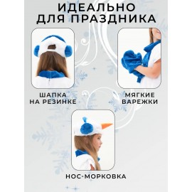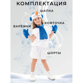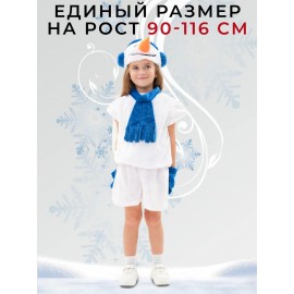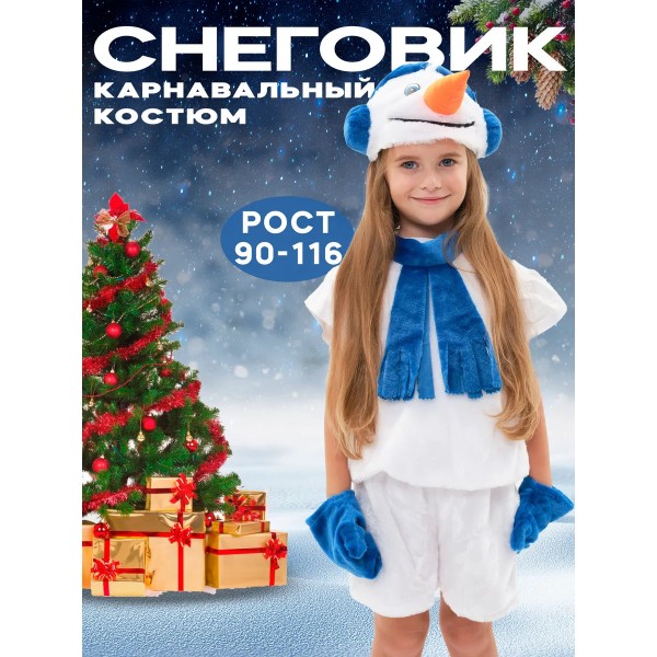 Карнавальный костюм Снеговик размер 90-116 (Белый) – маскарадный костюм для Вашего ребенка на Новый Год и другие праздники, подойдет для спектаклей, вечеринок, а также, его можно одеть его на фотосессию.