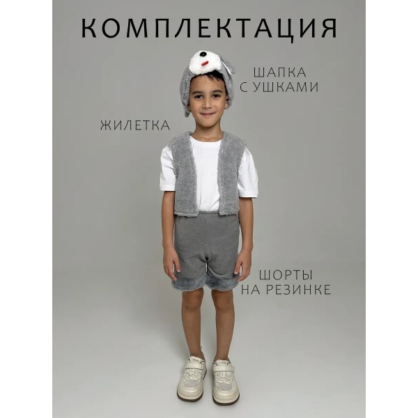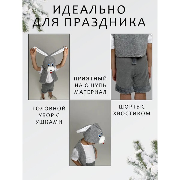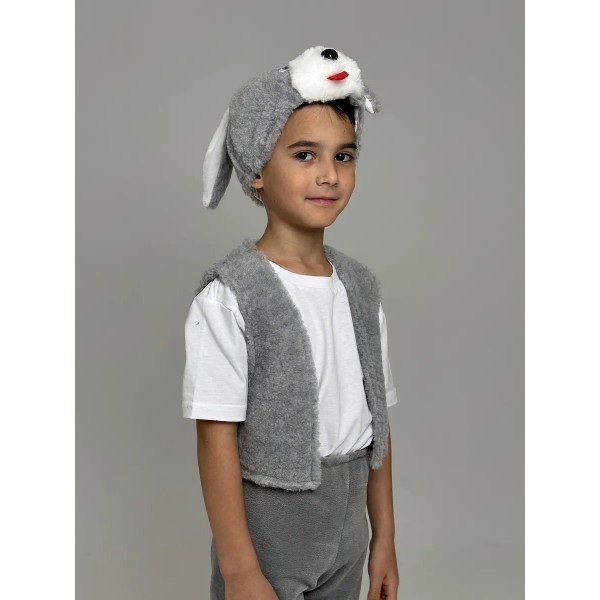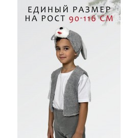 Карнавальный костюм Зайчика, размер 90-116 (Серый) - нарядный карнавальный костюм позволит вашему ребенку войти в образ Зайчика. Такой костюм актуален не только на Новый год, но и на детских утренниках в садике или школе, любых праздниках или даже, на театральных постановках.