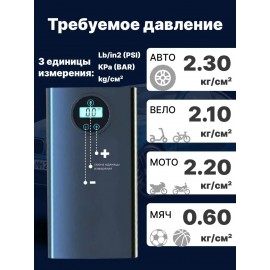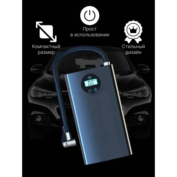 Автомобильный компрессор c LED экраном - умный насос для накачки автомобильных шин с датчиком давления, со встроенным АКБ и зарядкой от USB. Батарея: 7.4V/120W/3600mah. Подробнее