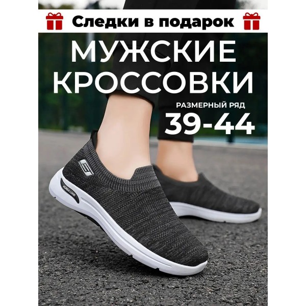 Легкие дышащие мужские кроссовки без шнурков KOREA LOOK тянущиеся вязаные с облегченной подошвой для спорта и повседневной носки (Черные) р-р 40