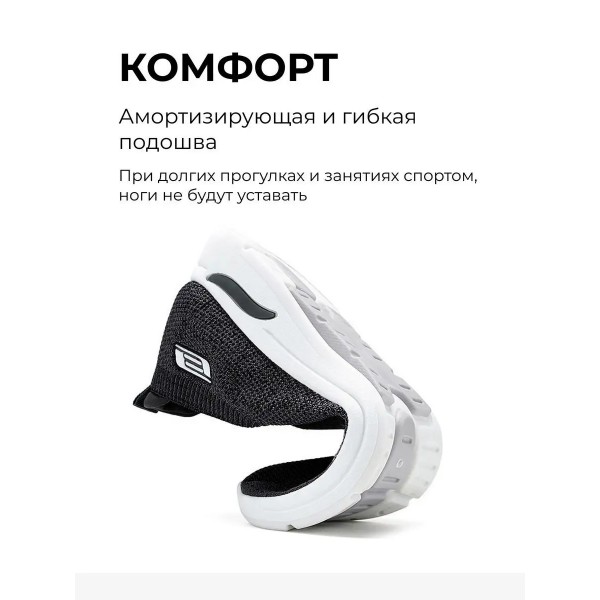 Легкие дышащие мужские кроссовки без шнурков KOREA LOOK тянущиеся вязаные с облегченной подошвой для спорта и повседневной носки (Черные) р-р 41