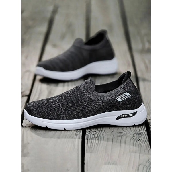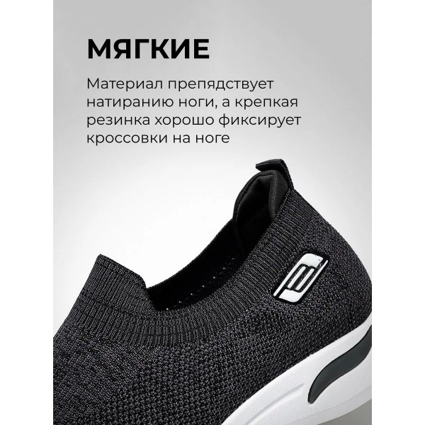 Легкие дышащие мужские кроссовки без шнурков KOREA LOOK тянущиеся вязаные с облегченной подошвой для спорта и повседневной носки (Черные) р-р 43
