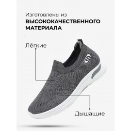 Легкие дышащие мужские кроссовки без шнурков KOREA LOOK тянущиеся вязаные с облегченной подошвой для спорта и повседневной носки (Серые) р-р 40