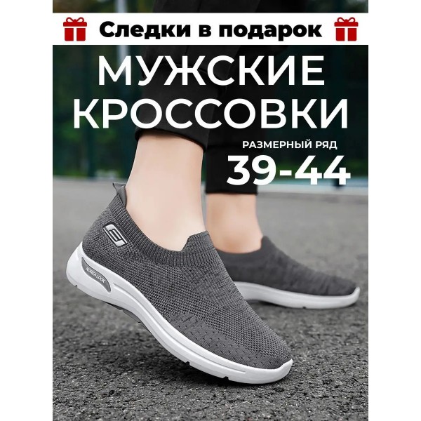 Легкие дышащие мужские кроссовки без шнурков KOREA LOOK тянущиеся вязаные с облегченной подошвой для спорта и повседневной носки (Серые) р-р 41