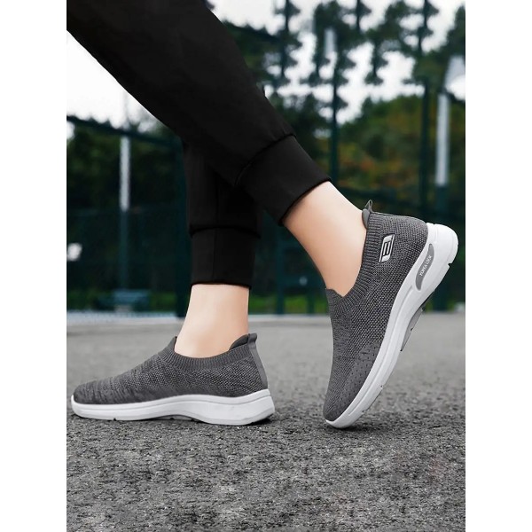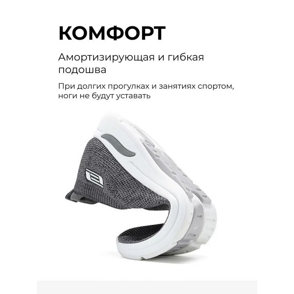 Легкие дышащие мужские кроссовки без шнурков KOREA LOOK тянущиеся вязаные с облегченной подошвой для спорта и повседневной носки (Серые) р-р 43 Подробнее