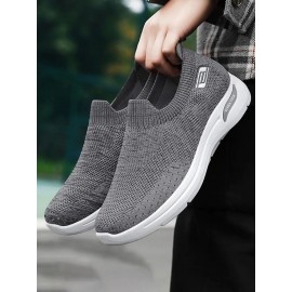 Легкие дышащие мужские кроссовки без шнурков KOREA LOOK тянущиеся вязаные с облегченной подошвой для спорта и повседневной носки (Серые) р-р 43