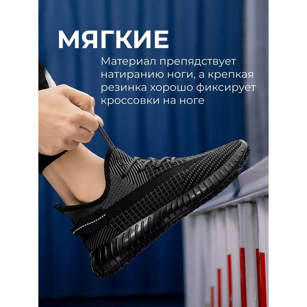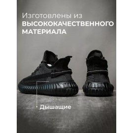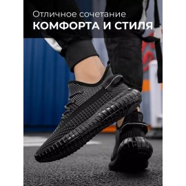 Легкие мужские дышащие кроссовки изи KOREA LOOK с вентилируемым текстильным верхом для повседневной носки и спорта (Черные) р-р 44