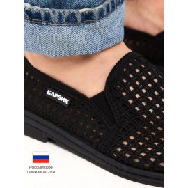 Женские мокасины Горошек 2-резинки (Чёрный) Размер 36