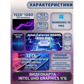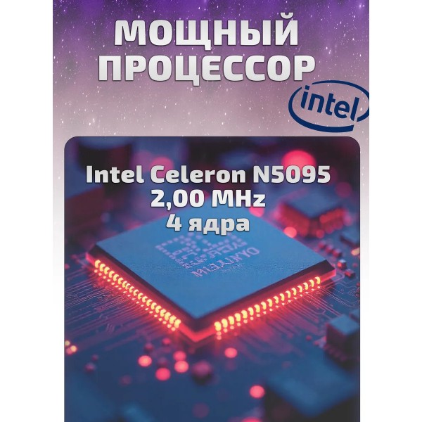 Ноутбук оснащен процессором Intel Celeron N5095 с частотой 2000 МГц и 4 ядрами, что обеспечивает высокую производительность и быстродействие. Оперативная память DDR4 объемом 16 ГБ позволяет работать с ресурсоемкими приложениями и играми без задержек.