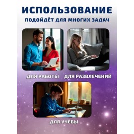 Устройство имеет компактные размеры и вес всего 1.9 кг, что делает его удобным для транспортировки. Время автономной работы составляет 8 часов, что позволяет использовать ноутбук в течение рабочего дня без необходимости постоянной подзарядки.