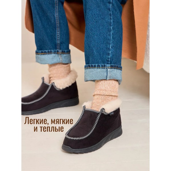 Полуботинки изготовлены в России из качественных материалов, практичны в уходе, удобны при носке, имеют широкую колодку. Это сделано с расчетом на то, что человек будет носить обувь на шерстяной носок и использовать войлочную стельку при носке, как и в другой зимней обуви. Станут незаменимы и при работе в холодном цеху и как просто сменная обувь в загородном доме и на работе.