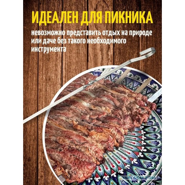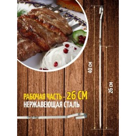 Шампур из нержавеющей стали для пикника. Невозможно представить отдых на природе или даче без такого необходимого инструмента. Размеры: длина 40 см. Шампуры изготовлены из 100% нержавеющей термостойкой пищевой стали. Нержавеющая сталь не поддается коррозии, со временем не темнеет.